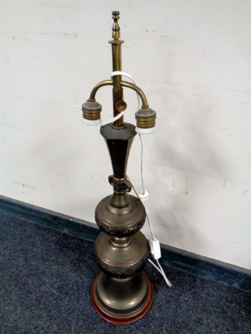 A decorative brass table lamp