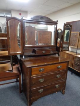 An Edwardian mahogany dressing chest with triple mirror