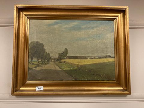 Arthur N Elsen : A barn by a field, oil on canvas, 46 x 33 cm
