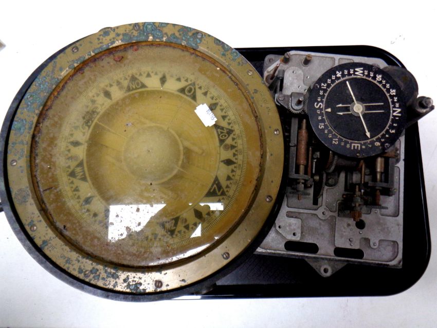 A 20th century brass ship's compass together with a further compass with mechanism