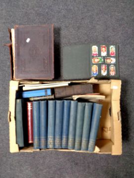A box of nine volumes The Great War, a leather bound holy bible, cigarette cards in album etc