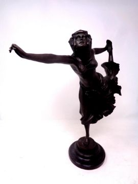 A bronze Art Deco style figure, dancing lady, after C L. J. R. Colinet on a circular marble base, height 41.5 cm