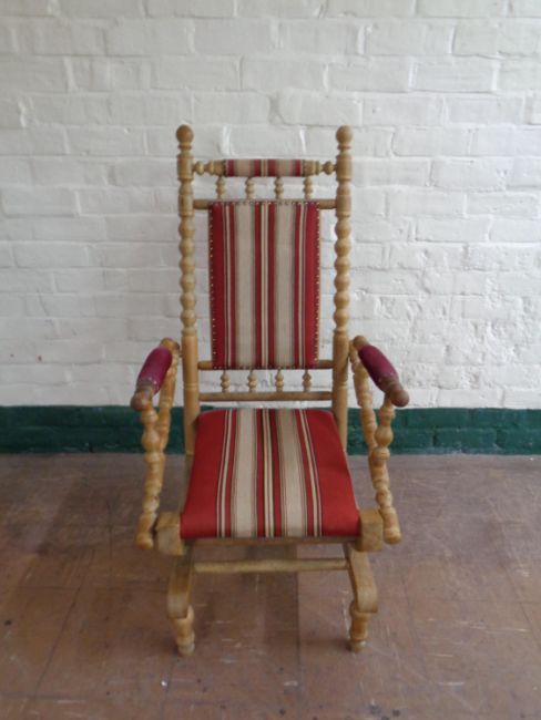 A blonde oak bobbin American style rocking chair