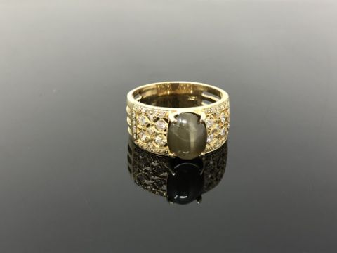 A 14ct gold chrysoberyl and diamond ring, size U.