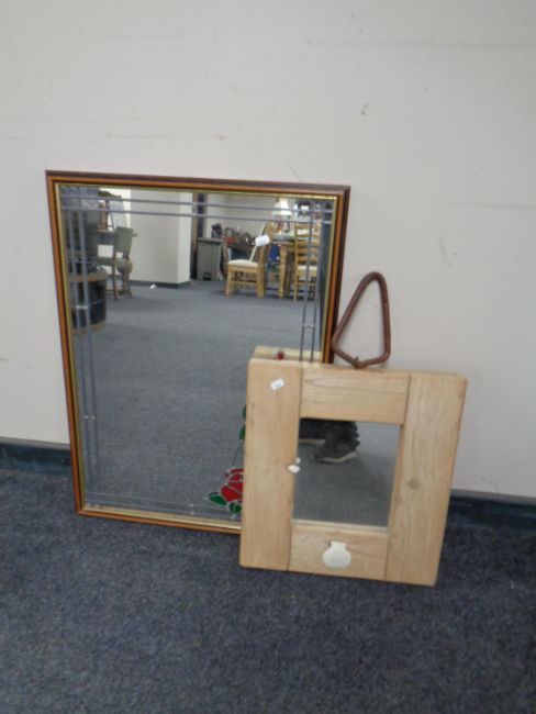 A driftwood mirror together with a further leaded glass framed mirror