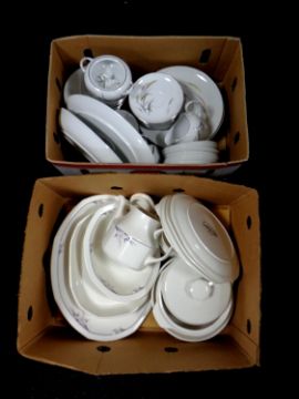 Two boxes containing Royal Doulton Nimbus and Japanese dinner ware