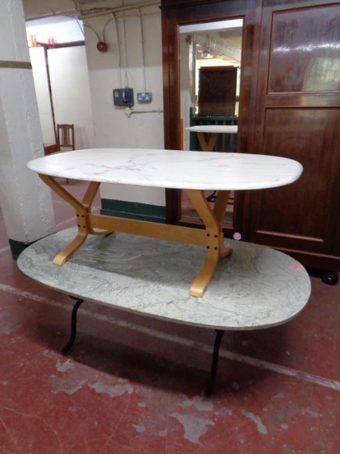 Two oval composite topped coffee tables