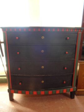 A Scandinavian painted oak bow fronted four drawer chest