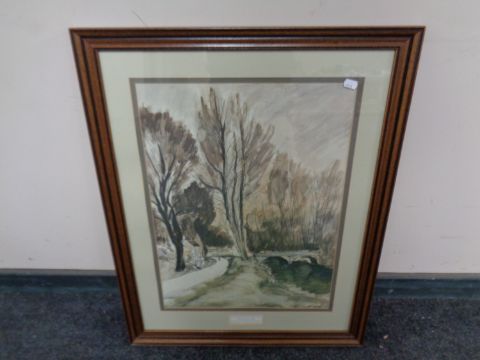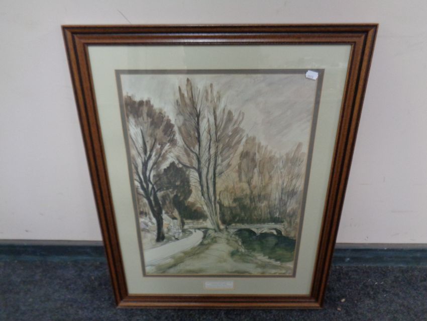 An Andre Dunoyer De Segonzac print, landscape with a bridge, framed