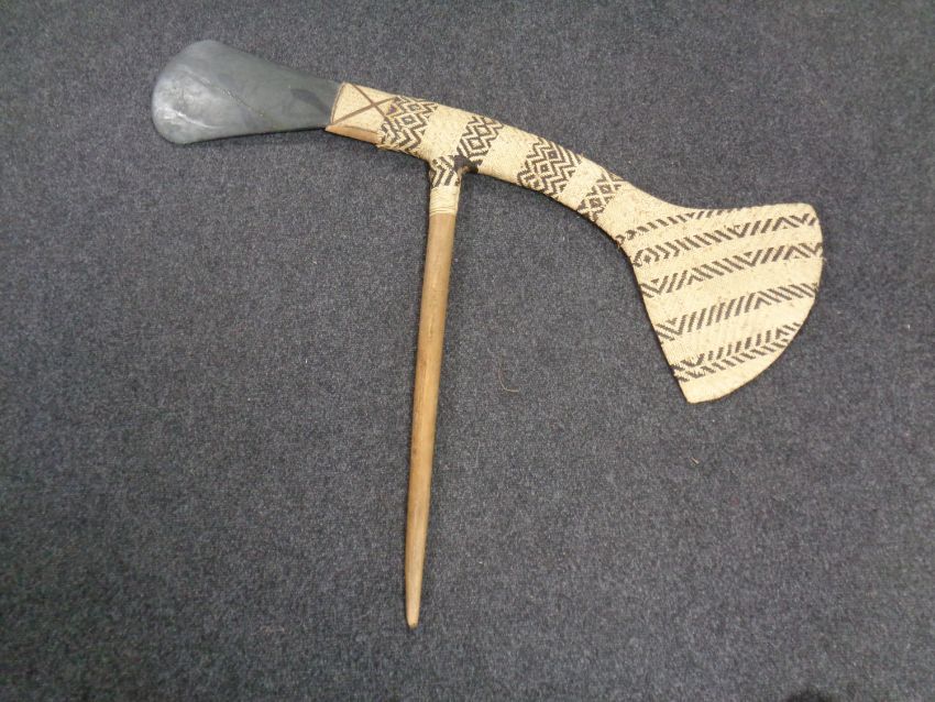 A New Guinea Western Highlands ceremonial stone axe with wicker work, 20th century (a/f)