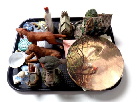 A tray of assorted ceramics to include collector's plate, Lilliput cottages, crystal ornaments, Staffordshire figure Cricketer