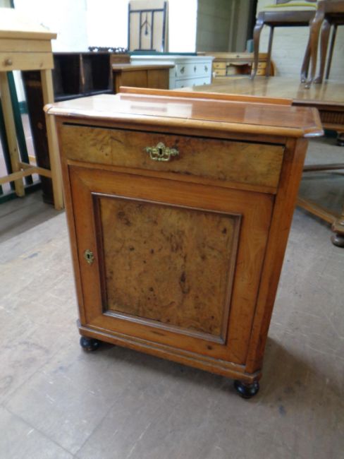 A 19th century pine cabinet fitted a drawer with a walnut panelled drawer