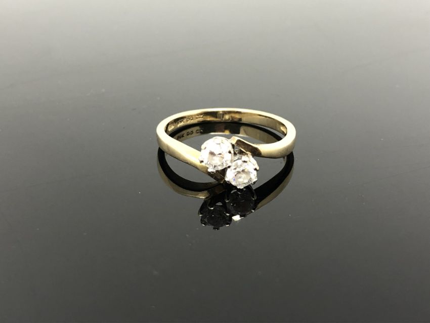 A 14ct gold two stone CZ crossover ring, size P