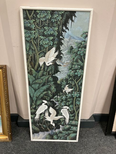 Continental school : Herons in foliage, oil on canvas, 33 x 89 cm