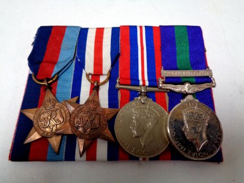 A group of four WWII medals to include campaign medal, Palestine Medal, 1939-45 Star and France and Germany Star
