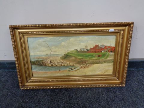 A Charles McGarrigle oil on canvas, Seaton Sluice, in a gilt frame (repaired)