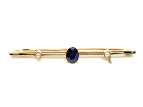 A 15ct gold brooch set with a sapphire, 2.9g.