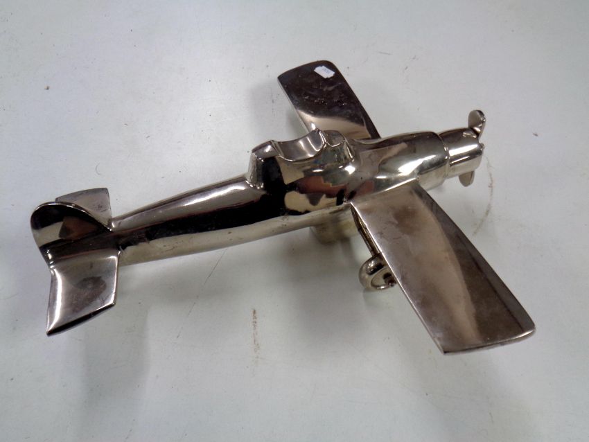 A chromed metal model of an aeroplane