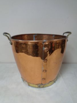 A brass and copper twin handled coal bucket
