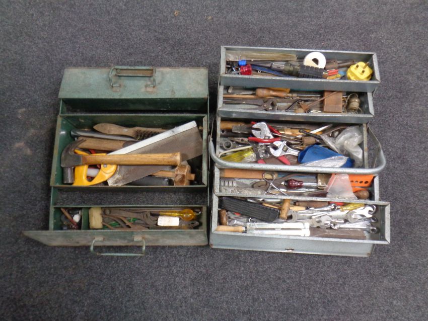 Two concertina tool boxes containing assorted hand tools