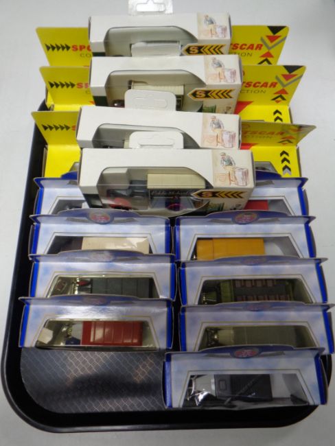 A tray containing Shell sports car, Lledo Eddie Stobart and Oxford die cast vehicles (boxed)