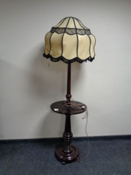 A mahogany standard lamp table with shade
