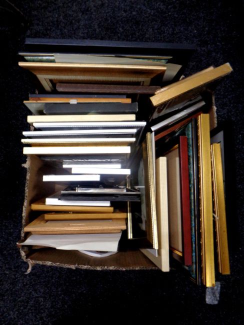 A box containing a large quantity of assorted picture frames, mirrored frames, prints, plaques etc