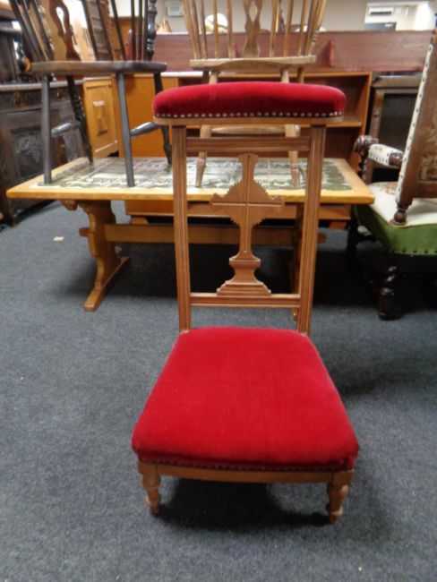 A 19th century prayer chair in oak frame