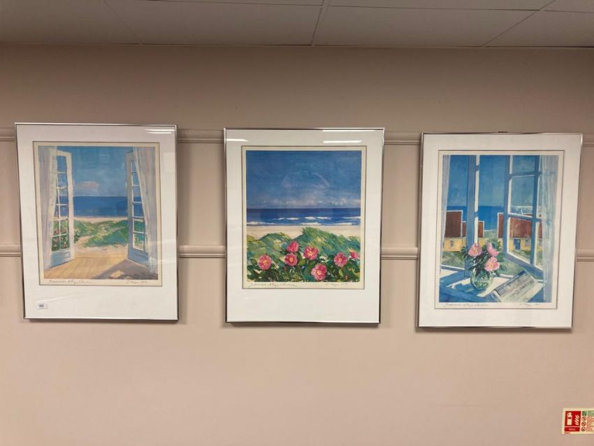After Johannes Meys Andersen : A view from a balcony, colour print, 44 x 50 cm, signed, together with two further colour prints by the same artist, both signed (3)