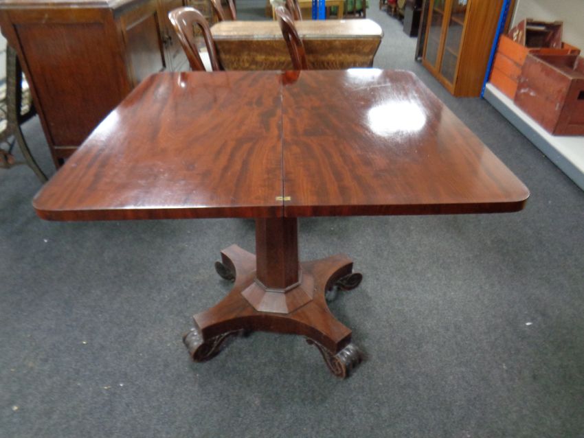 An early Victorian mahogany turnover topped tea table