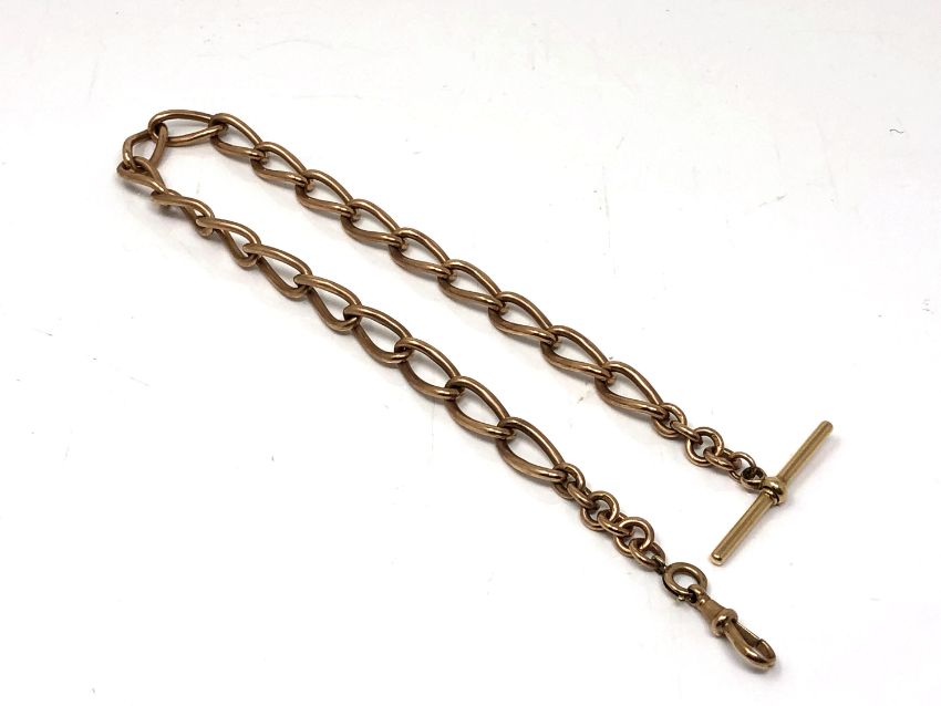 A 9ct gold chain with 15ct gold T-bar, weight 60.6 grams