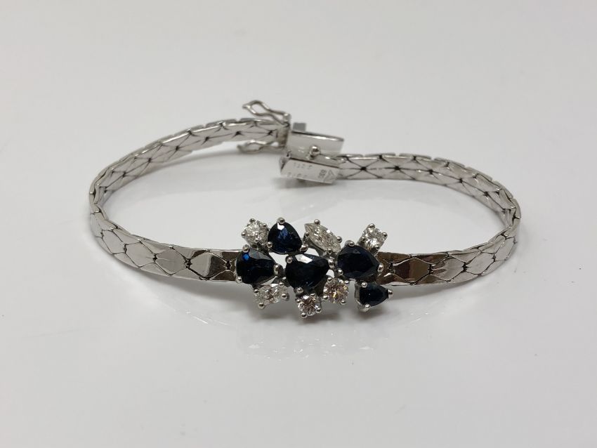 An 18ct white gold sapphire and diamond bracelet, approximately 1ct of diamonds, length 17.5cm.