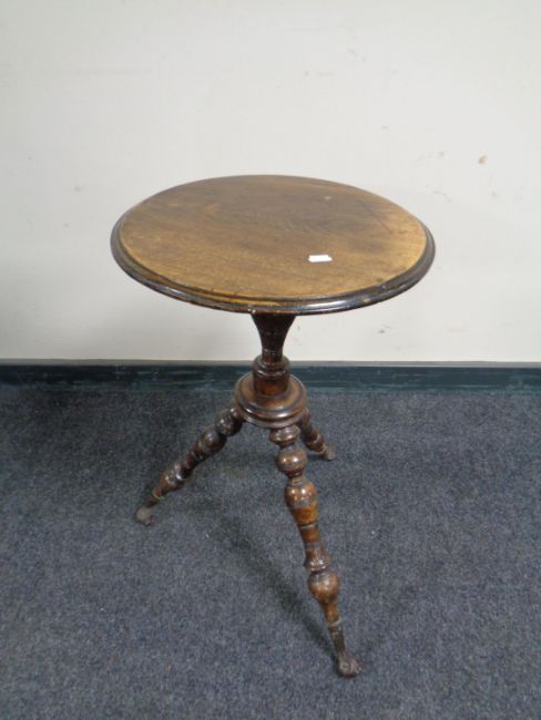 A small antique tripod table with glass ball feet