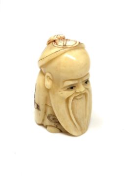 A carved Chinese bone netsuke - Wise man with beard