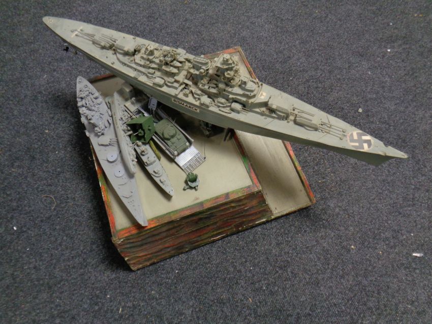 A model warship together with further model ships etc and stand