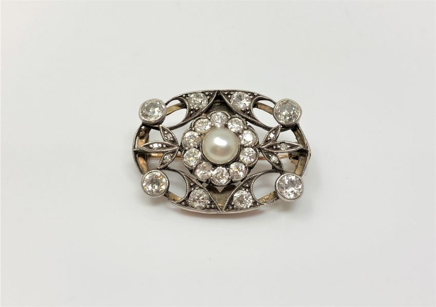 A fine Victorian pearl and diamond brooch, length 28mm