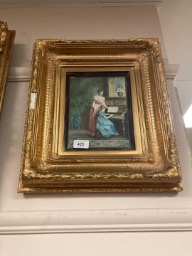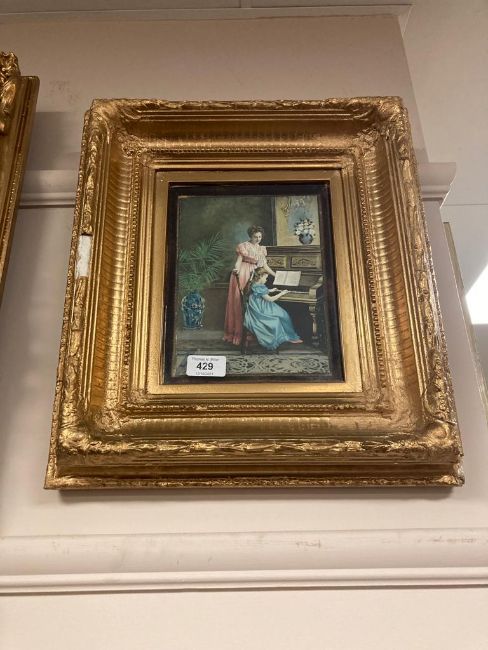 A photogravure : The first piano lesson, 17 x 22 cm, framed