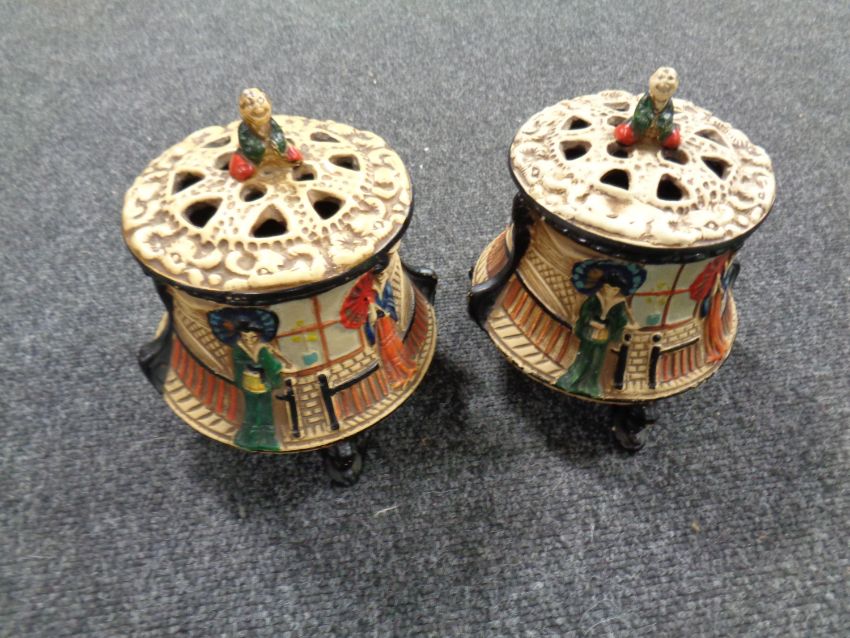 A pair of Japanese vases together with a decorative table lamp with shade