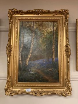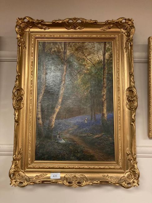 John Falconer Slater (1857-1937), Figures in woodland, oil on canvas, 32 x 49 cm, signed, dated 1913, framed