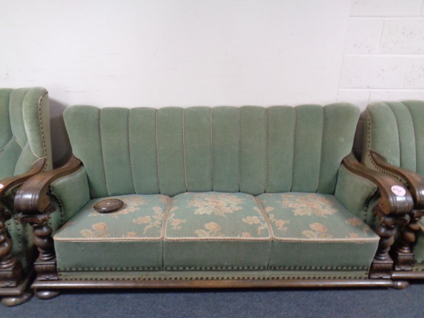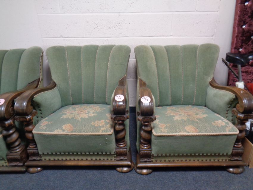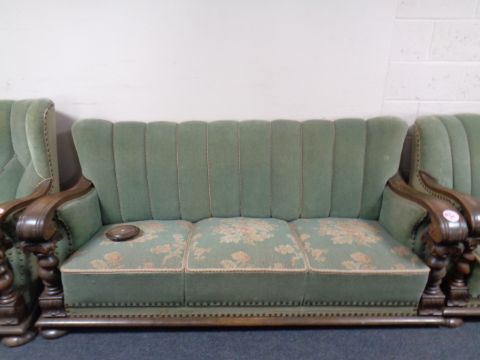A continental four piece lounge suite with oak frame comprising of three seater settee and three chairs