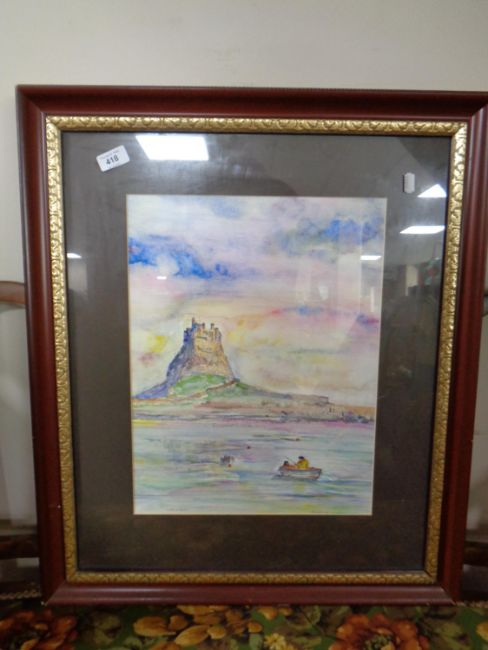 A watercolour drawing depicting Lindisfarne