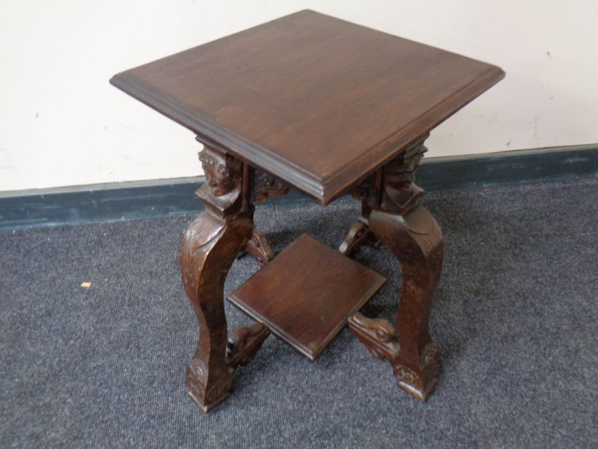 A 19th century occasional table on heavily carved figured legs