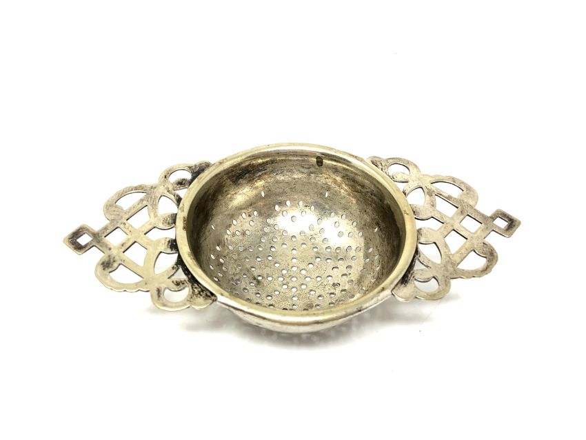 A silver plated strainer