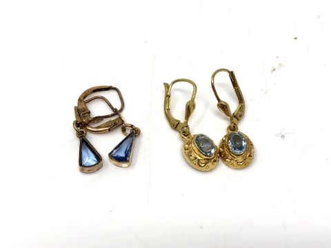 Two pairs of yellow metal earrings