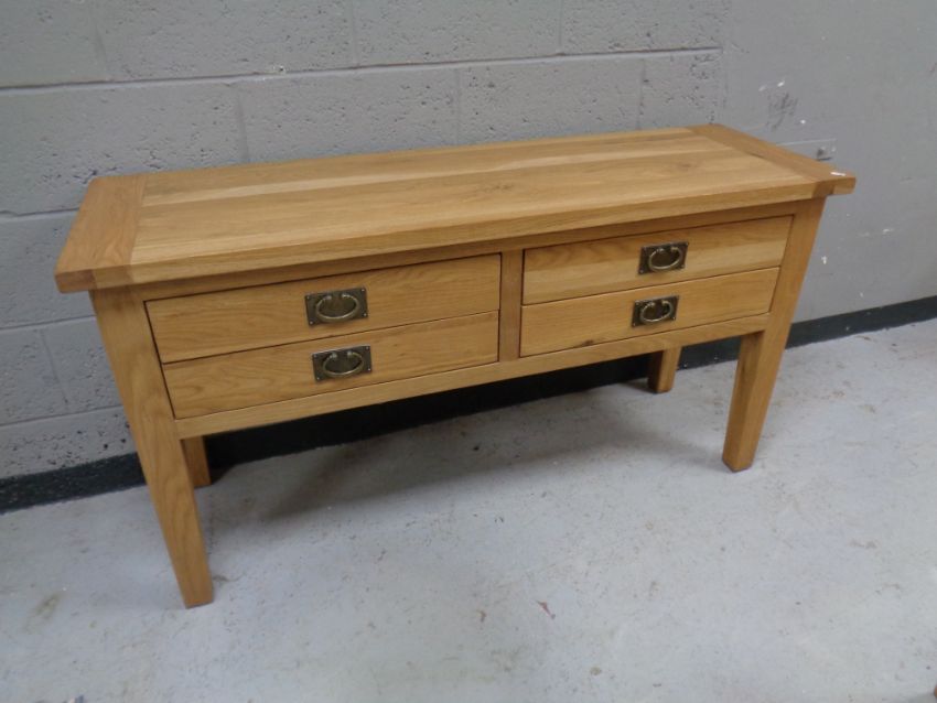 A contemporary oak four drawer side table