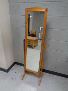 A contemporary pine cheval mirror