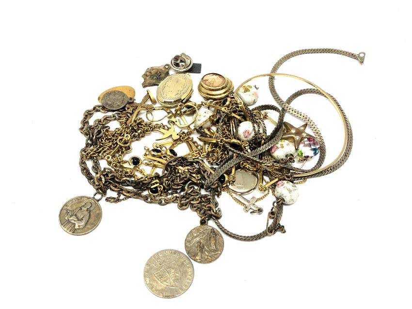 A small quantity of costume jewellery, religious pendants, crucifix, necklaces etc