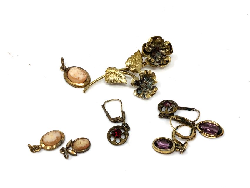 A small collection of jewellery to include vintage earrings, cameo pendants etc
