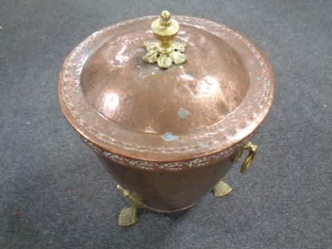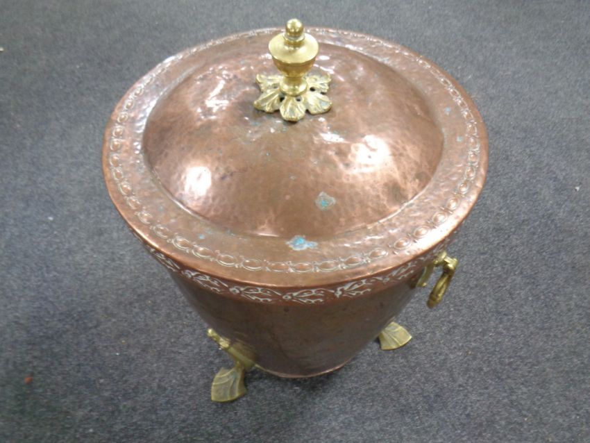 An Arts and Crafts copper and brass coal bin