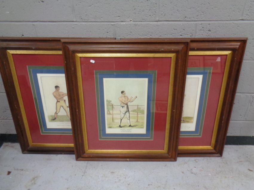 A set of three framed boxing prints